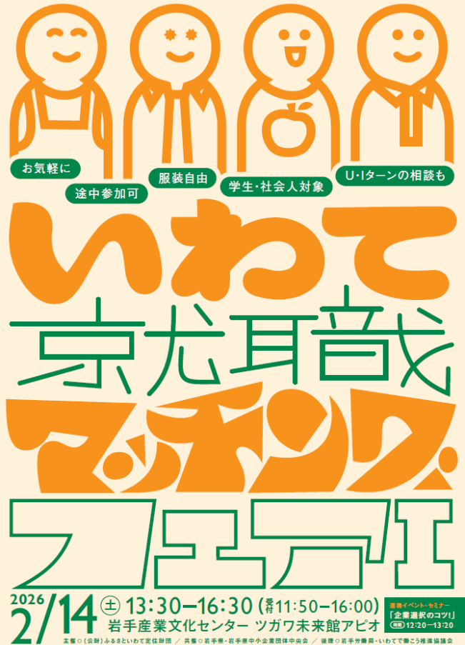 2月14日(土)岩手産業文化センターツガワ未来館アピオで開催される「いわて就職マッチングフェアI」に出展をします。